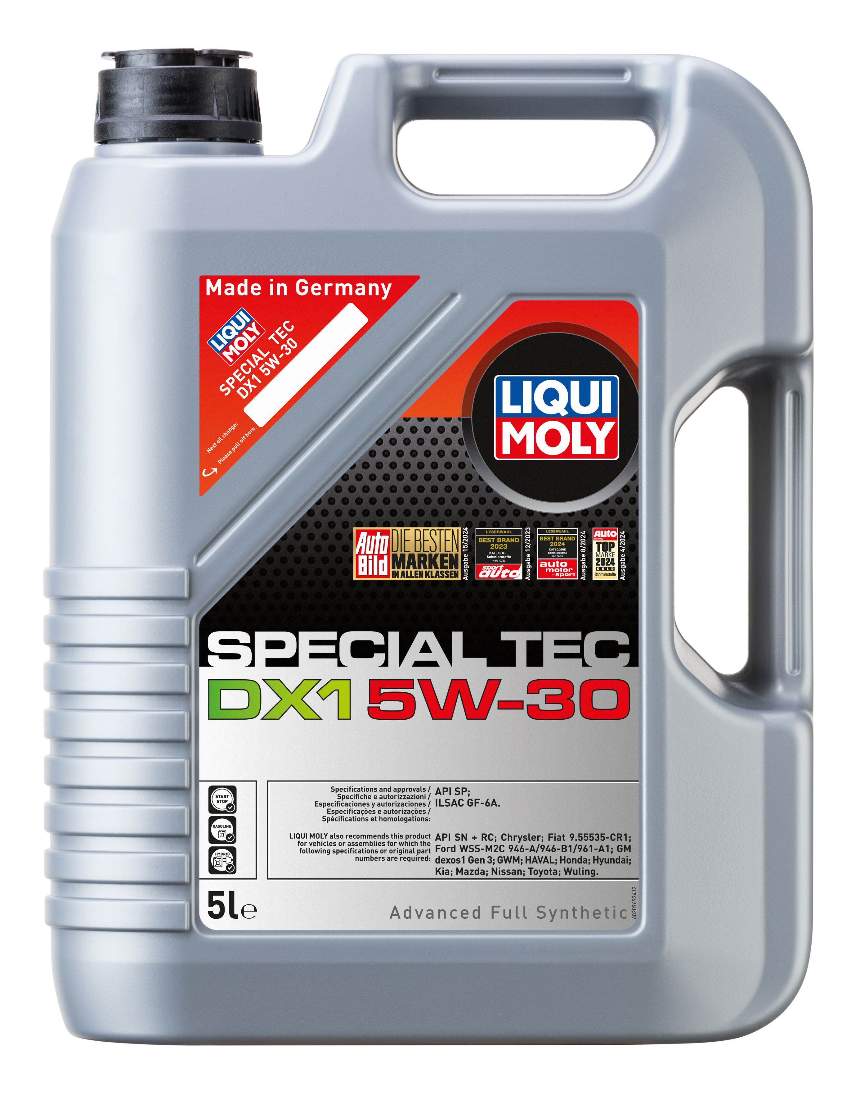 •Современное легкотекучее моторное масло на основе синтетической технологии. Оптимизирует расход топлива. Обеспечивает отличных холодный пуск, оптимальную защиту от износа и превосходную чистоту двигателя. Инновационная технология присадок, предотвращающая Low Speed Pre-Ignition (LSPI) минимизирует «калильное зажигание», что обеспечивает длительный срок службы двигателя. Идеально подходит для увеличенных межсервисных интервалов и под высокие требования автопроизводителей. Синтетическая базовая основа в сочетании с самыми современными присадками обеспечивает: - Высочайшие показатели чистоты двигателя - Быстрое поступление масла к деталям двигателя при низких температурах - Очень высокая защита от износа и надежность смазывания - Очень низкие потери масла на испарение - Экономия топлива и снижение вредных выбросов - Проверено на турбированных двигателях и катализаторе - Cтойкость к высоким температурам Моторное масло Special Tec DX1 5W-30 соответствует специальным требованиям GM, OPEL и др. производителей, поэтому его использование позволяет сохранить все гарантийные условия при прохождении ТО соответствующих автомобилей. Поддерживает чистоту двигателя, продлевая срок его службы.