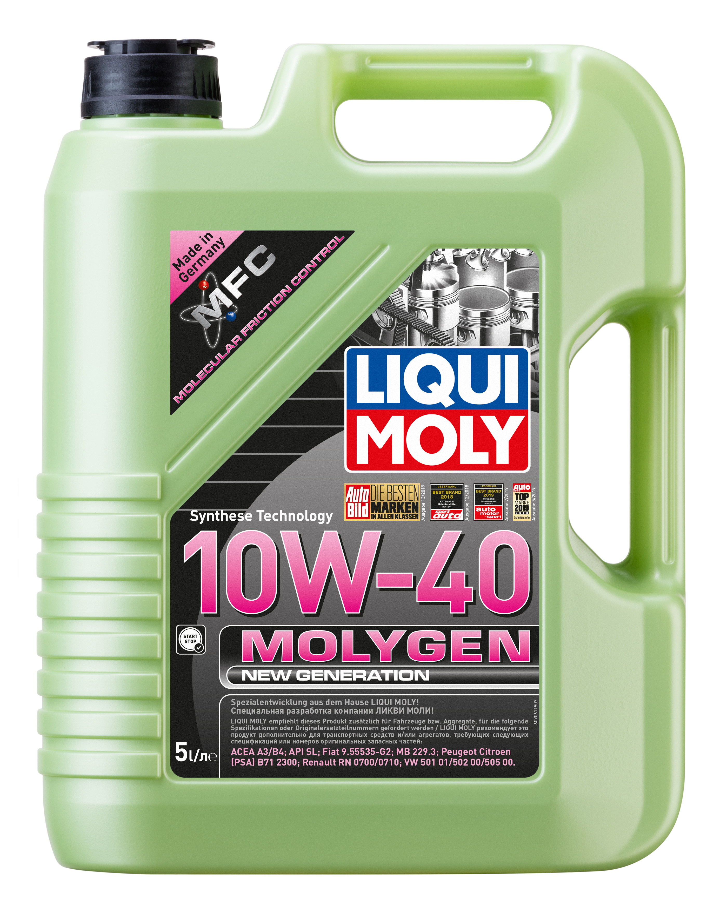•Комбинация самых современных базовых масел и новейшего уникального пакета присадок Molygen, созданного на основе гибридной технологии MFC, обеспечивает моторному маслу непревзойденные защитные свойства. Технология MFC (Molecular Friction Control) работает посредством легирования поверхностного слоя деталей двигателя ионами молибдена и вольфрама. В результате легированные поверхности обладают очень высоким запасом прочности, который сохраняется на долгий срок. - Наивысшая защита от износа - Высокие показатели топливной экономии - Надежное поступление масла к деталям двигателя во всем диапазоне рабочих температур - Очень низкий расход масла - Отличная чистота двигателя - Экономия топлива и снижение вредных выбросов - Проверено на системах с турбинами, компрессорами и катализаторами Моторное масло Molygen NG 10W-40 благодаря новейшей формуле MFC позволяет существенно увеличить ресурс двигателя и сэкономить за счет снижения расхода топлива.