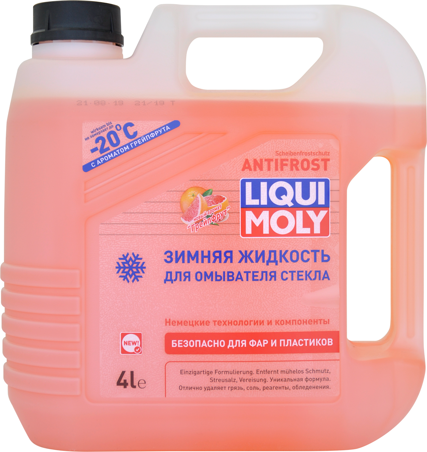 Зимняя жидкость для омывателя стекла изготавливается по рецептуре LIQUI MOLY GmbH из эксклюзивных немецких компонентов. Предназначена для очистки переднего ветрового стекла и стёкол фар от снега, льда, антигололёдных реагентов, копоти, соли и грязи. Не оставляет разводов и следов на поверхностях после прохода стеклоочистителей и высыхания. Обладает приятным запахом Грейпфрута.