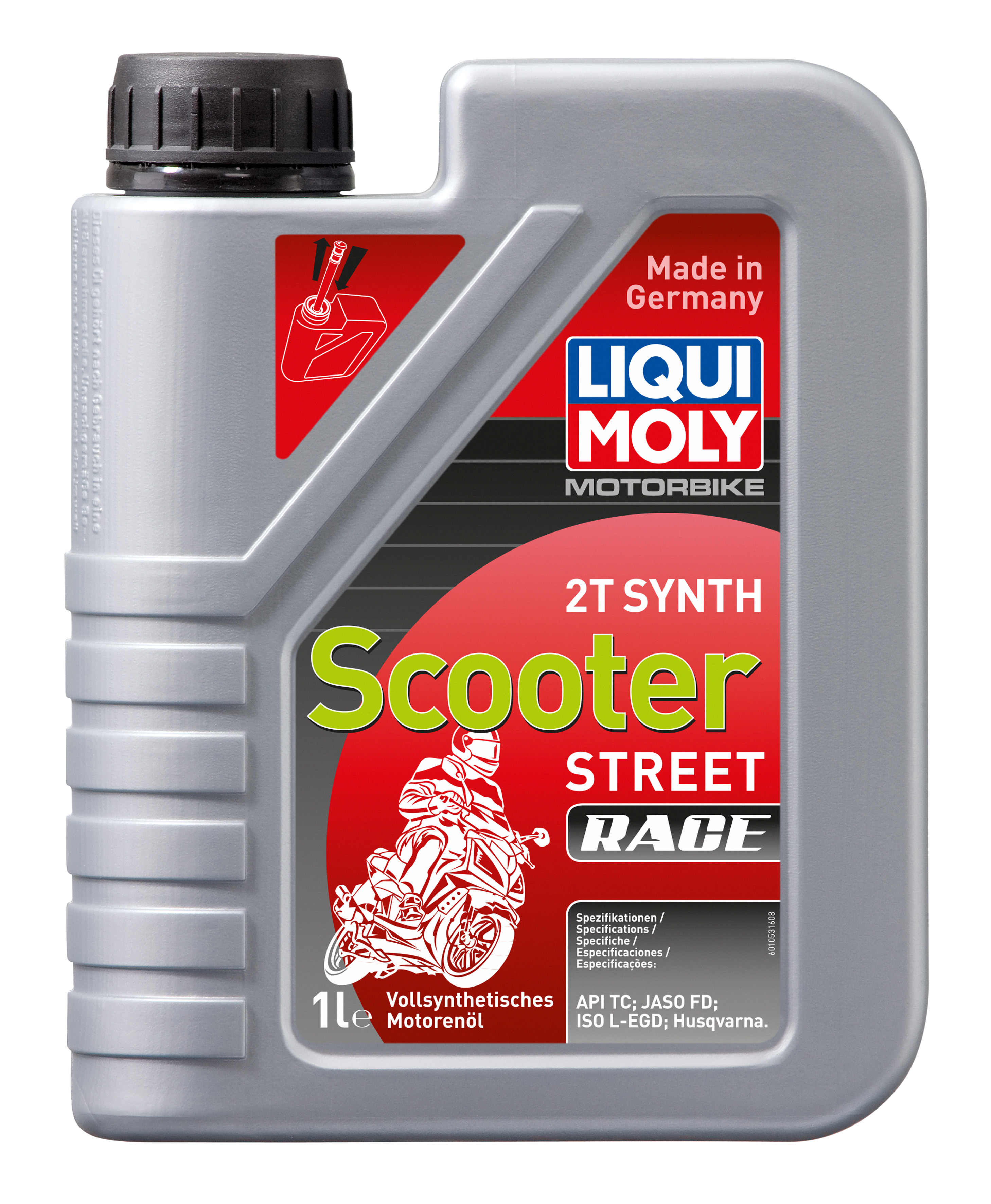 •Комбинация полностью синтетической базы и современных присадок гарантирует максимальную защиту двигателя на любых оборотах и нагрузках. Бездымно сгорает, не дает нагаров в двигателе и глушителе. Повышает мощность двигателя. Поддерживает чистоту свечей. Самосмешиваемо с топливом, используется для раздельной и смешанной систем подачи топлива. Отлично прокачивается. Защищает от коррозии. Красного цвета. Полностью синтетическая базовая основа в сочетании с современными присадками обеспечивает: - безупречную чистоту двигателя, свечей зажигания, мощностного клапана и глушителя - отличную защиту от износа, задиров и прихватов - бездымное сгорание - низкую концентрацию масла в смеси с топливом - оптимальную защиту от коррозии - стойкость к высоким оборотам и перегреву Использование масла Motorbike 2T Synth Street Race обеспечивает отличную и долговременную работу стандартных и высокофорсированных 2Т двигателей скутеров любой кубатуры в любых режимах. Специально для гоночного использования. Для двигателей с водяным и воздушным охлаждением. Концентрация в смеси с топливом до 1:100. Красного цвета.