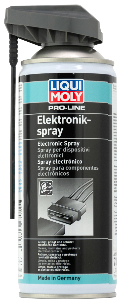 •Полностью синтетическая, совместимая с пластмассами аэрозоль для чистки и ухода за электрическими контактами автомобильных компонентов. Вытесняет воду, защищает контакты от коррозии и влажности. Удаляет окислы и сульфиды, тем самым уменьшает переходное сопротивление в контактных группах, устраняет искрение, защищает и повышает надежность эксплуатации. Не повреждает пластмассовые и резиновые детали. После испарения растворителя не оставляет грязных следов и не содержит силикона. - Очищает загрязненные контакты - Точно наносится при использовании распыляющей трубочки - Быстро высыхает - Защищает от коррозии - Вытесняет воду, защищает от влажности - Удаляет окислы и сульфиды - Уменьшает переходное сопротивление - Совместим с пластиками и резиной - Распыляется при любом положении баллона - Не содержит силикона Использование Pro-Line Electronic-Spray помогает защитить контакты электрооборудования от коррозии, продлевая срок его эксплуатации и повышая надежность системы.