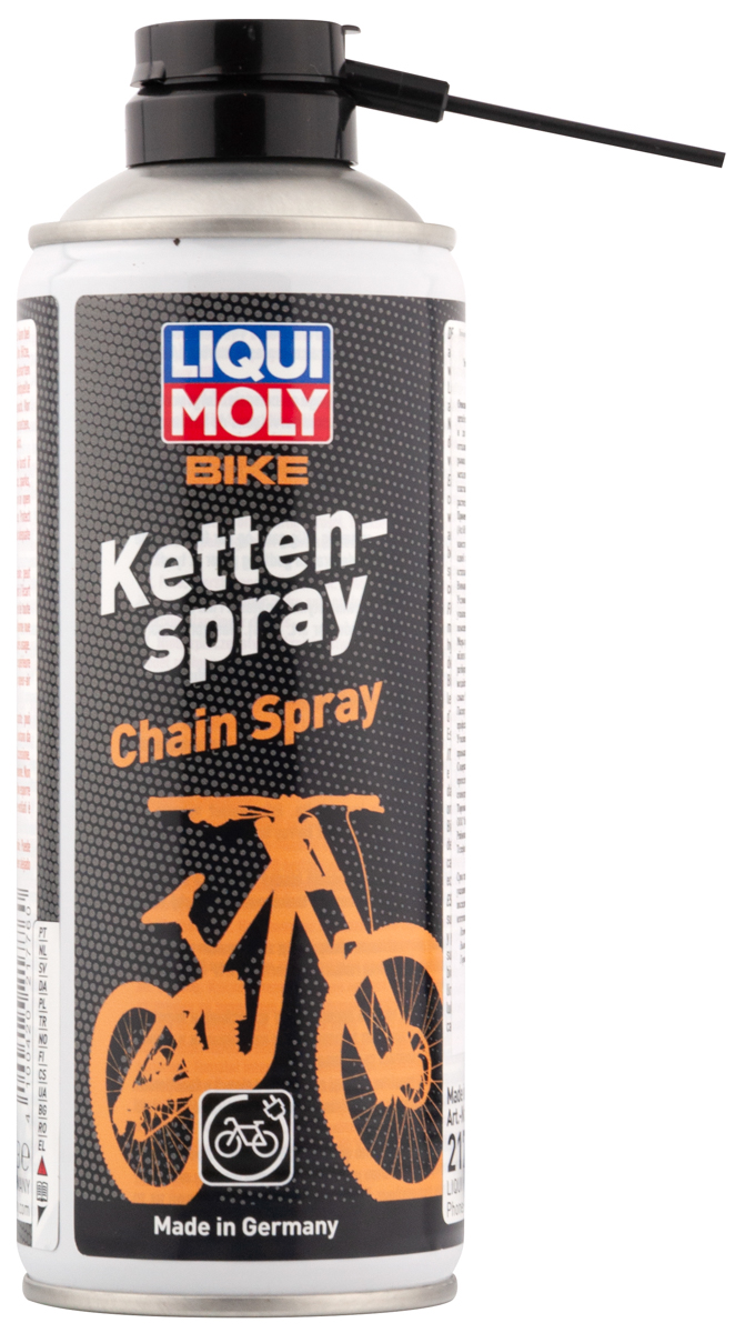 Очистить цепь с помощью Kettenreiniger (Art.6054) и высушить. Хорошо встряхнуть аэрозоль и нанести на цепь тонким слоем. Прокрутить педали на одной скорости против часовой стрелки. Стереть остатки смазки. Внимание: избегать попадания на тормозные механизмы!